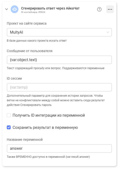 Действие позволяет сгенерировать ответ через AikaChat