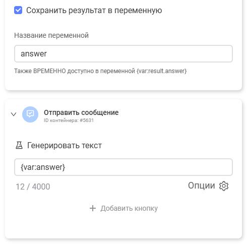 Тогда в тексте вы можете указать {var:answer}