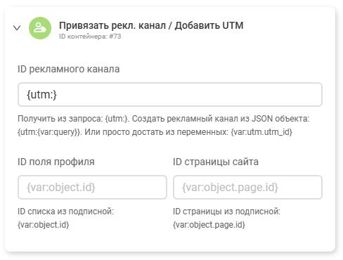 Вывод id рекламного канала осуществляется через простую переменную {utm:}